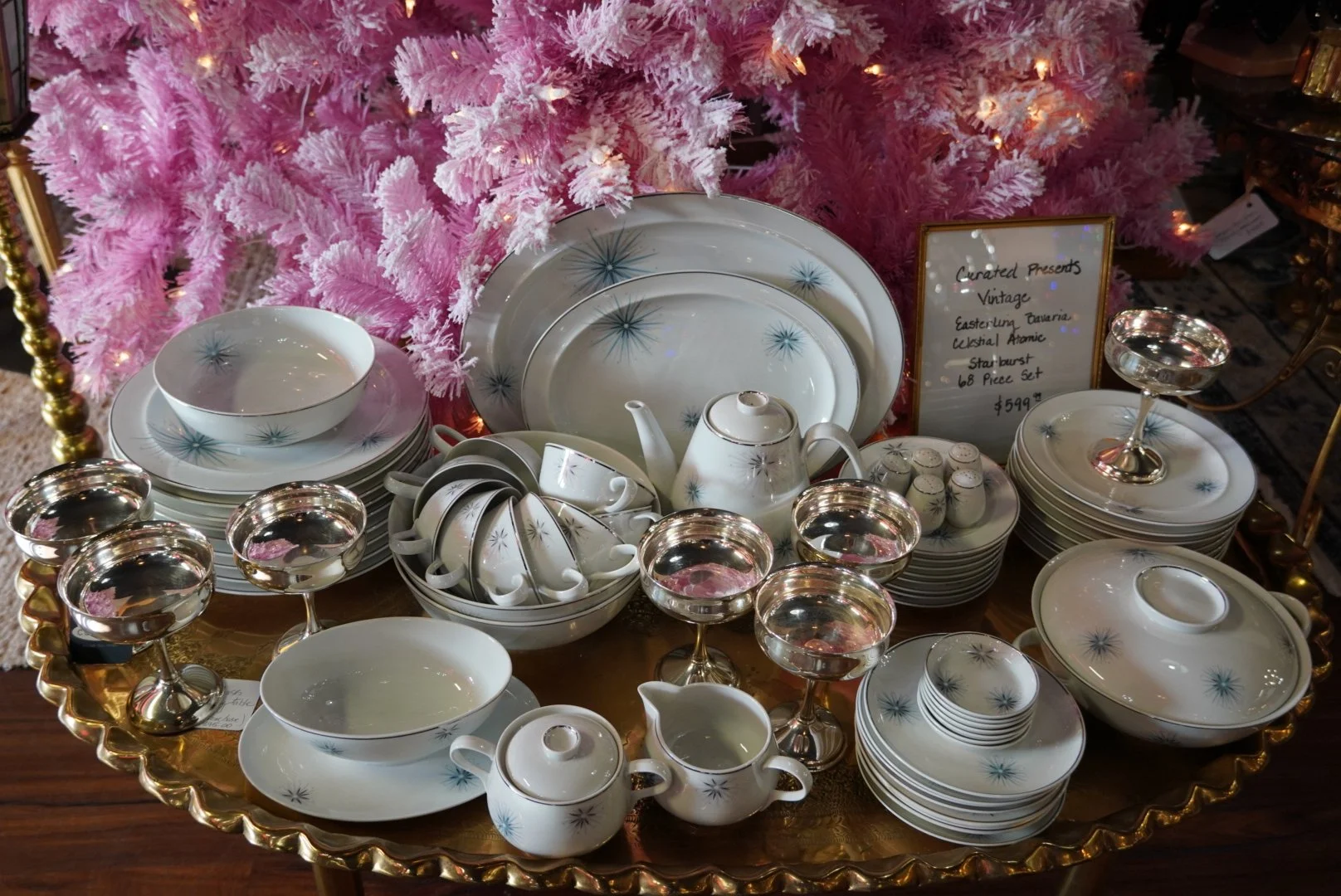 Beautifully curated displays and vignettes throughout the store are intended to inspire you to consider the stylish possibilities when you mix new and old into your home décor. Whether it’s antique porcelain serving dishes or place settings, vintage cocktail sets, crystal glassware, MCM barware, exquisite vases, or unique decorative accents for your home, we have an ever-rotating selection of one-of-a-kind items for you to discover.